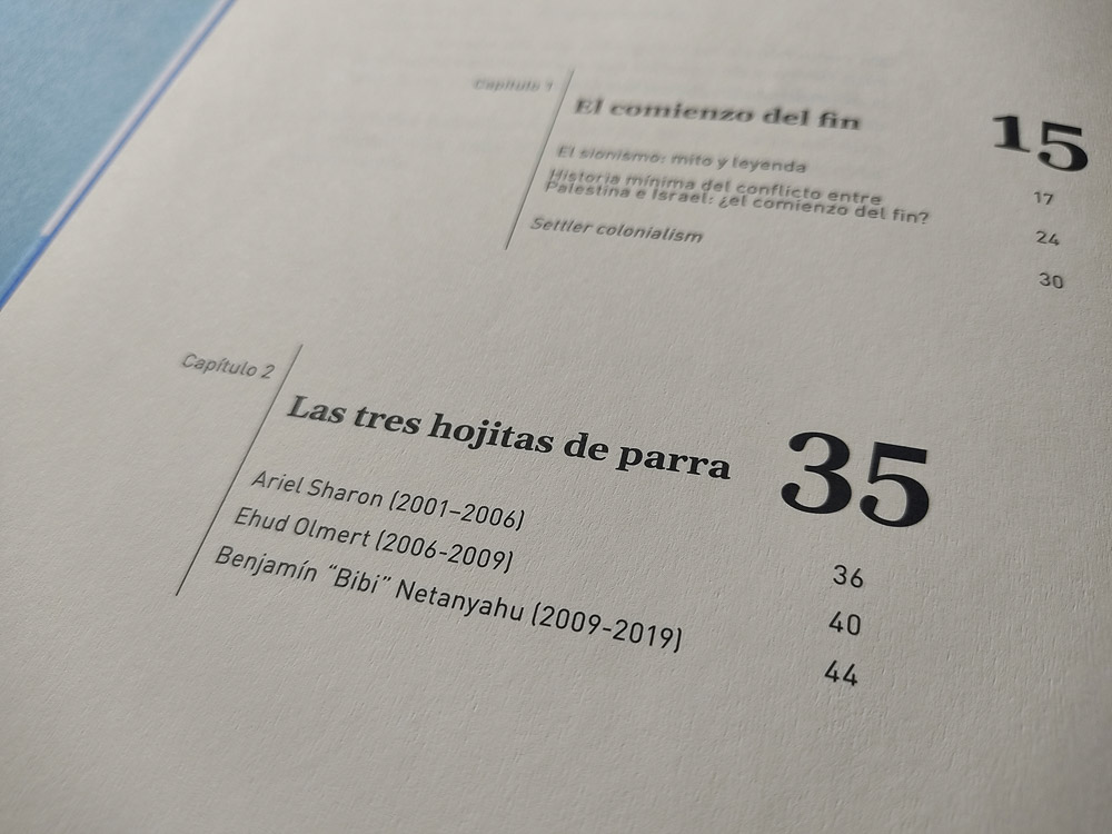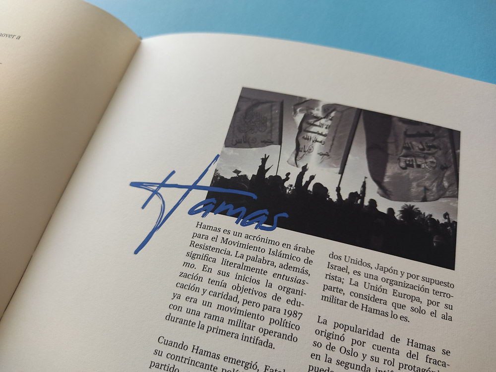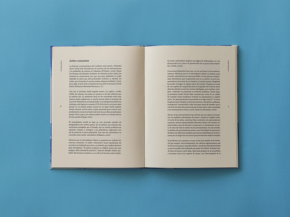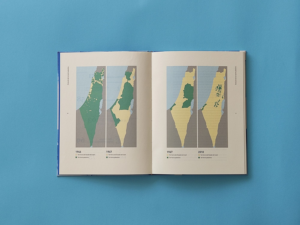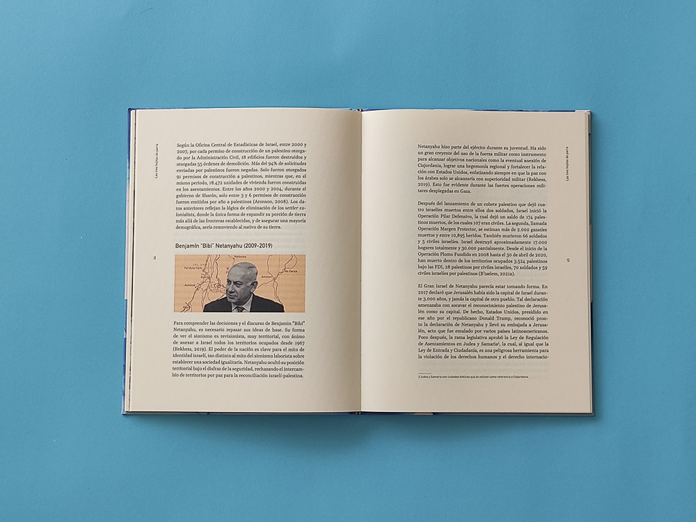 Diseño de cubiertas y páginas para un estudio sobre los antecedentes históricos del conflicto entre dos pueblos que fueron obligados a compartir el mismo territorio.